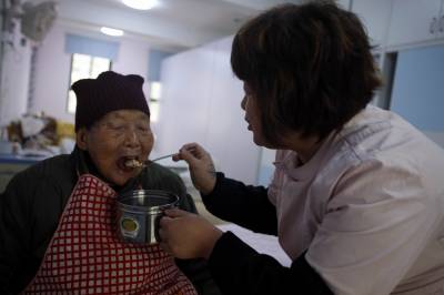 宜昌让老人享全寿之福2011年2月27日,宜昌市福利院工作人员,给88岁的刘奶奶喂晚饭。湖北省宜昌市采取多种形式兴办福利事业,政府投资分级兴办县乡福利院的同时支持鼓励社会投资办院,解决城乡老有所养,提高人们的幸福指数,让老人享全寿之福。文振效