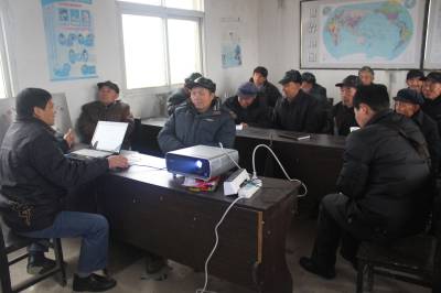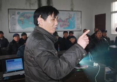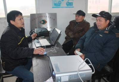 2月28日上午,孝昌花园镇鸦雀李的村的近四十位种粮大户,兴冲冲地走进新瑞农业植保专业合作社在村电教室为他们开设的课堂,学习优质稻种植新技术。据悉,孝昌县新瑞农业植保专业合作社特地请来安徽丰乐种业总农艺师彭斯敏,为这些年龄五、六十岁的”大学生”(社员)传授稻谷新品种的播种、栽培管理及防虫治病新技术。在课堂上,这些”大学生们”有的在作笔记,有的问这问那,求知欲望不亚于在校的小学生。签约摄影师宋俊初摄
