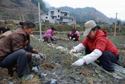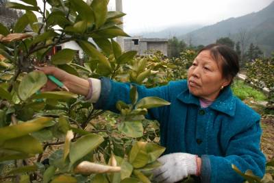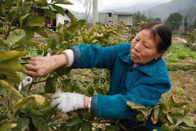 春耕战场上”娘子军”2月27日,宣恩县高罗乡一位”留守”妇女正在进行白柚春季管理。正值春耕时节,在湖北省宣恩县田间地头,活跃着一支支穿红戴绿的”娘子军”。该县是劳务输出大县,每年约7万劳动力分赴全国各地,造成全县出现”留守”妇女2万余人。留在家中的农村妇女承担了比以往更多的生产劳动,成为当地春耕战场上的主力军。她们勇敢地挥锄挑担投身春耕生产,呈现出一幅幅”姐妹学科技、妯娌比生产、姑嫂竞女杰、互相关爱、共建新农村”的女耕图。 本报视界网李以国摄 地址:宣恩县新闻中心13997771030