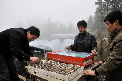 2月27日,恩施市崔家坝镇刘家河村烟叶育苗大户崔显荣的育苗大棚前,帮工们正忙着用新技术为漂浮育苗盘下种。近年来,恩施市烟叶已成为农民增收的六大特色产业之一,目前,烟叶生产的专业化水平得到增强,实现了育苗、种植、烘烤分离,并加强了新技术推广。截止目前,该市新建2412个烟叶育苗大棚,全部进入育苗阶段,落实种植面积12.5万亩,可实现收购值2.2亿元,税收5000万元。