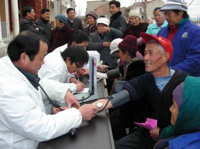 2月28日,黄梅县卫生系统干部在濯港镇丁字街村为村民查病治病。当日,该县从县直机关和乡镇抽调1400名机关干部,组成16个工作队、517个工作组,分赴全县16个乡镇,进驻全县517个村(居委会),集中4个月时间与农民同吃、同住、同劳动,共谋城乡发展。(本报视界网吴志雄摄)