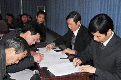 > 图片 郧县移民局与下属单位签订6500户移民内安工作军令状