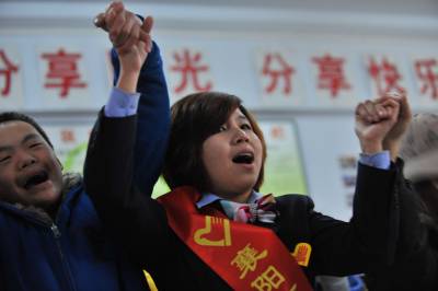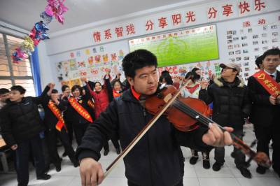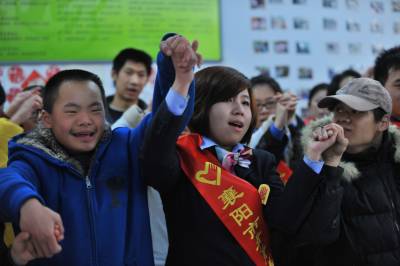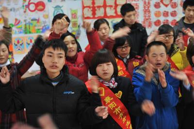 3月2日,”全国特奥示范社区”襄阳市铁路社区内,青年志愿者与社区10名残障青少年一起做游戏。当日,20名汉十高速与社区附近的致远中学青年志愿者相约,来到残障青少年较集中的湖北省襄阳市铁路社区残疾人康复站,在送来崭新的体育器材的同时,和残障青少年一起剪纸、画画、唱歌,做游戏。4年前,铁路社区居委会摸排发现,社区共有20多个智残青少年,最大的30多岁,最小的仅14岁,其中不少人常被家人锁在屋内。为了帮助这一特殊群体,居委会下决心把智残孩子纳入社区托管范围。不久,铁路社区爱心特教班成立,社区工作人员一一登门拜访,把辖区22个智残青少年接到该班,耐心地教他们识字、画画、剪纸、认钱等,同时对其进行肢体反应训练。每月有9名有特长的家长充当义工老师,附近学校的音乐、体育老师也经常来义务为他们上课。