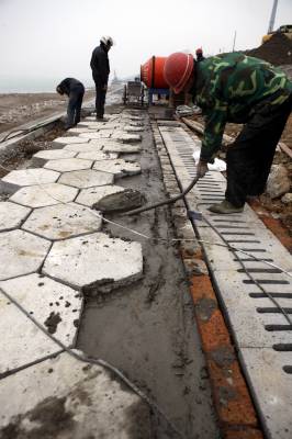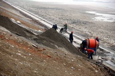 宜昌吸收社会投资建长江护岸2011年3月1日,施工人员在湖北宜昌市伍家岗江段防洪护岸工地施工。湖北省宜昌市水利部门广泛吸纳社会投资修建长江堤防工程,既保证城市防洪安全,又美化城市环境。文振效