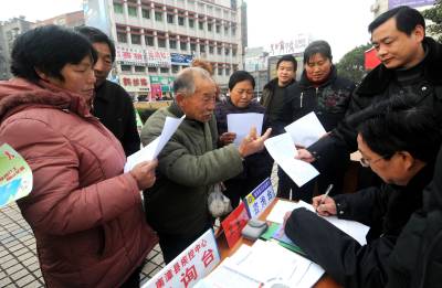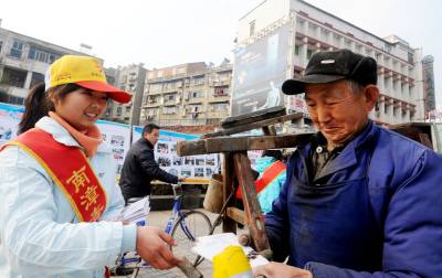 3月3日,热心的公民正在咨询台前献综治良策。当日,南漳县在水镜广场举行全县社会综合治理月宣传启动仪式。并成立青年志愿者服务队。来自全县农村、县直机关、学校和街道居民参加这一仪式。为打造平安南漳,构建和谐社会夯实基础。