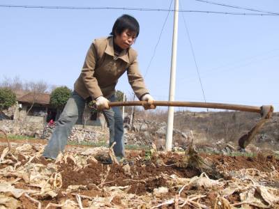 3月3日,湖北省郧县谭山镇徐家村3组50岁的农民付长娥将自家的5分干死的油菜地开挖改种成耐旱的黄姜,据付长娥介绍去年她8月间种下的油菜长势良好,但由于去冬干旱少雨和冰冻使5分地油菜全部干死,现在改种成耐旱的黄姜以减少干旱带来的损失,目前郧县有20万亩干旱农田全部改种春玉米等其它作物。图为付长娥正在改种黄姜时的情景。周家山摄湖北省郧县城管大队电话13872840078邮编442500