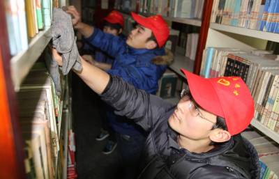 3月3日,几名大学生志愿者在图书馆打扫卫生。为迎接3月5日中国青年志愿者服务日的到来。当日,恩施职业技术学院电气与机械工程系近百名青年志愿者来到恩施州图书馆打扫卫生、整理书籍。据了解,多年来该校青年志愿者服务队每周都会组织志愿者到图书馆打扫卫生、整理书籍,为福利院老人洗衣叠被,进社区免费为市民修理电器。