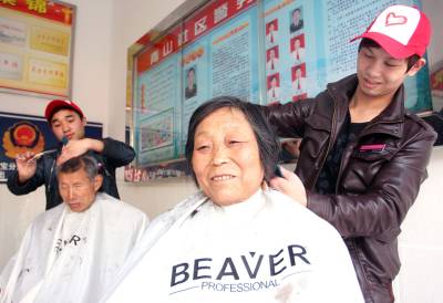 昨日,荆门市东宝区泉口街道青山社区青年志愿者在为空巢老人理发。据了解,在全国青年志愿者服务日来临之际,该社区组织10余名青年志愿者在辖区开展便民服务活动,以弘扬雷锋精神,建设和谐社区。本报记者张庆通讯员陈祖玲摄