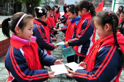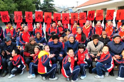 2011年3月3日,湖北省宜昌市夷陵区第二完全小学开展”雷锋精神届届传”主题教育活动,该校小雷锋们走进福利院与老人联谊,同时开展志愿宣传服务活动。该校自1986年启动”雷锋精神届届传”活动以来,坚持”弘扬雷锋精神、培育四有新人”,成立了一百个雏鹰小分队、创建了一百个校外活动基地,小雷锋们做好事超过1万件,让雷锋精神在校园届届相传。本报视界网张国荣摄
