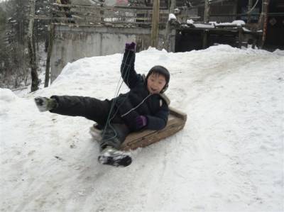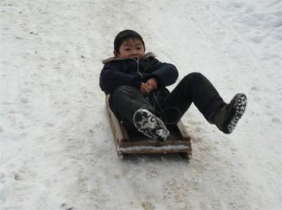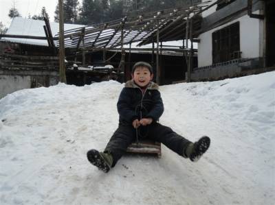 在建始县官店镇这个老、少、边、穷的山区,自然条件极其恶劣,为了维持家庭生计,有许许多多孩子的父母长期在外,直到寒冬腊月,仍然还在外奔波,孩子们的寒假是一种孤独的等待,他们在家没有伙伴的时候,只有在家门前的斜坡上滑雪以及和家唯一的”伙伴”——小狗相互嬉戏和偎依,享受属于自己的童年乐趣,只是这种乐趣还是缺少了父母在身边的关爱。