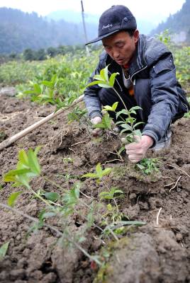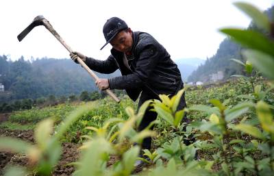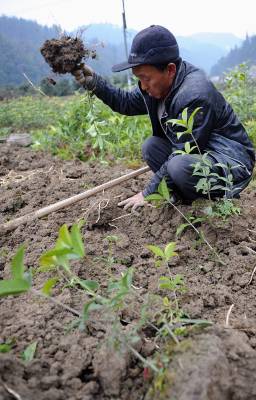 4日,宣恩县珠山镇甘溪村农妇龙松梅夫妇在自己的责任田里为”农庄主”打工。他们的孩子在外务工,土地租给别人当苗圃园。宣恩县农民人均耕地面积为1.1亩,当地常年外出务工人员达7万人左右,除少量耕地由家庭留守人员继续耕作外,其中大部分土地被流转给当地”农庄主”从事蔬菜种植、林木育种等多种经营,这不仅使外出务工农民土地撂荒免予撂荒,同时使农村土地相对集中,实现集约经营。本报视界网宋文摄