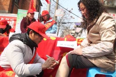 (通讯员曾凡顺)3月4日,武汉洪山区”创先争优当先锋,环境改善我给力”活动在珞南街黎明社区举行,湖北中医药大学针灸推拿专业的大二学生杨大业和同学们现场给居民艾灸,居民连称”舒服”。杨大业和同学们一起来参加洪山区志愿者服务活动,在社区现场给居民讲起了艾灸的好处:通经活络、行气活血、去湿逐寒、消肿散结、防病保健……让不少未接触过艾灸这一传统医学的居民大呼过瘾。当天,洪山区团委邀请了华中师范大学、华中农业大学等高校的青年志愿者一同开展志愿服务活动,志愿者们到社区孤寡老人家打扫卫生,在马路边倡导文明出行……同时,该区法院青年同志还在社区现场解答居民的法律咨询;区卫生局免费给居民量血压,并分发健康知识手册;区环保局、城管局还向市民宣传生态环境和市容环境的重要性。