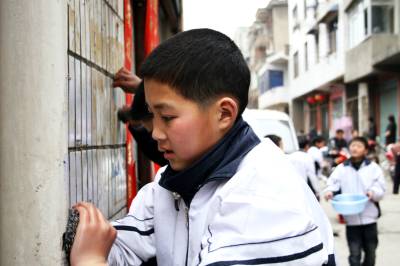 本报视界网签约摄影师颜义众:3月4日,竹溪县几名团员志愿者上街清理小广告。为迎接3月5日中国青年志愿者服务日的到来,竹溪县团县委与该县城关中学、实验中学共同组织近千名青年志愿者上街清理墙面小广告、到广场捡拾垃圾、进社区卫生服务等环保活动,以环保行动培养团员的志愿服务意识。