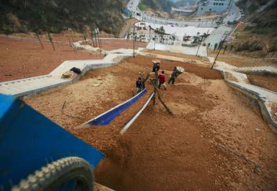 巴东县:以争创省级园林城市为载体倾力打造生态旅游城市(图)3月4日,园林工人在巴东县城填起的冲沟上培土植树。为彰显巴东魅力和发展潜力,促进人的全面发展,提升市民素质、城市形象和品位,该县以争创省级园林城市为载体,倾力打造生态旅游城市。目前已新增城市绿化面积1000多亩,并广泛开展提高市民素质的培训教育活动。(视界网边文海摄)通联:湖北省巴东县新闻中心电话:13451032649