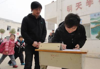 3月4日下午,郧县刘洞镇九年一贯制学校的教师们在校门口的摄像头下签名离校。随着近年来国家对教育的大力扶持,教师工资逐年增长,该镇已有80%的教师在城区购置了新房。刘洞镇是一个偏远的乡镇,周五放学时已错过了去县城的班车,出现有教师周五下午”逃跑”提前回家的现象。新学期伊始,该镇中心学校为加强对周五教师考勤管理而实施了”摄像头下签名离校”的新举措。(郧县刘洞镇九年一贯制学校高超/摄邮编442525)