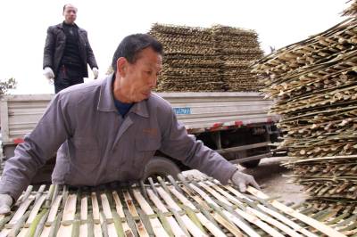 竹山10万竹农发竹财(图文)3月5日上午9时,竹山县宝丰镇下坝村一组竹农正在出售自家生产的竹制品。近年来,该县改造和新植竹林总面积增长到46万亩,以竹笋为主导品种的山野菜加工企业实现产值1000多万元,林农砍竹卖实现现金收入1000多万元,10万竹农人均增收200多元。该县规划”十二五”期间选择楠竹、雷竹等笋竹两用林新品种,使笋竹基地规模达到50万亩,实现竹业年产值2.5亿元。(竹山县宝丰镇中心学校朱本双电话:13177481456邮编:442213电子信箱:zsbfzbs@126.com)