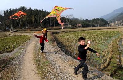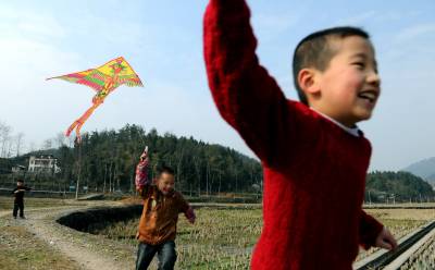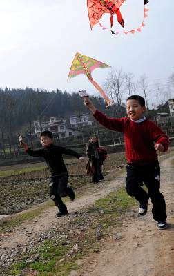5日,宣恩县民族实验小学的学生在田野里放风筝。当天是周末,部分家长带着孩子去完成学校为学生布置的社会实践参考题——找春天。当地许多学校为提高学生参与社会实践的能力,丰富学生课外生活,推出”家长每周参考”,为家长安排学生课外生活提供方向。本报视界网宋文摄