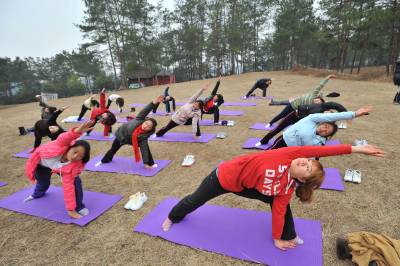 3月6日,一群爱好瑜珈运动的女士们相约来到襄阳郊外的黄家湾,在风光秀丽的山林中练习瑜珈,伴随着阵阵吹拂的松涛呼吸吐纳间,仿佛与大自然融为一体,组成了一幅天人树合一的美丽画卷,共同领略森林瑜伽境界。