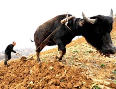 3月6日,从广东打工返乡的郧县杨溪镇刘湾村农民李发银正在牵牛耕整土地。在当地政府的支持下,他家今年承包了25亩土地种植早春西瓜,一季将收入7万元。近年来,该县外出务工农民已超过10万人,每年累计打工收入在5亿元以上,带回资金近3亿元。对此,政府出台一系列激励政策,派出领导干部到广东沿海地区,动员有技术、资金、头脑的务工人员返乡创业;对返乡创业人员在申请办证、用地、贷款等方面给予优先;今年还出资1500万元设立特色农业专项资金,用于扶持、奖励返乡经济能人和农民专业合作社,提供贴息贷款,吸引他们回乡创业。(本报视界网吴成林摄)