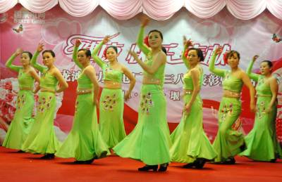 3月6日,湖北省电力公司黄龙滩水力发电厂隆重举行庆”三八”表彰会。会上,该厂女职工表演了精彩纷呈的文艺节目,图为该厂员工舞蹈表演。作者通联:湖北十堰朝阳路黄龙滩水力发电厂政工部喻敏邮编:442000电话:0719-8585665(办)13477290854(手)