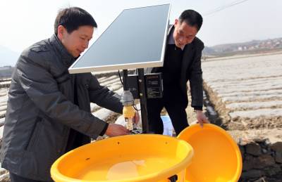 当日,湖北竹溪县百余名农业科技人员,深入田间地头,帮助农民安装调试太阳能杀虫灯。据县农业局负责人介绍,今年,该县共组织了100盏太阳能杀虫灯,赠送给种粮专业村。