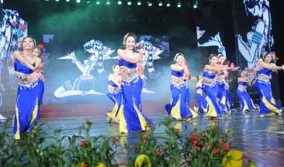 3月7日,省民族歌舞团的演员们正在表演舞蹈《女儿花》。当晚,由恩施州委宣传部、州妇女联合会主办的恩施州十大杰出女性颁奖晚会隆重举行。当晚揭晓的十大杰出女性中有高校和小学教师、下岗职工、企业家、农民,还有全州唯一的一名女派出所所长。本报视界网周光兵摄