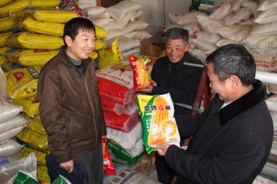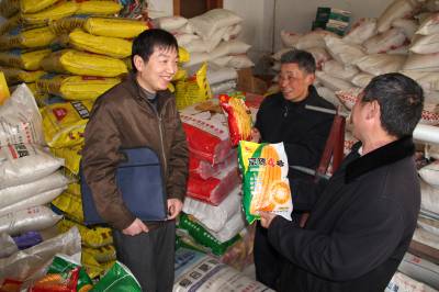 3月8日,龙泉信用社信贷员正在农资经销大户的门市部了解贷款使用等情况。谷城县农信社支农先知农。通过早调查、早安排、早贷款,给力全县春耕生产。目前,该社已发放春耕贷款9000多万元。马明刚摄