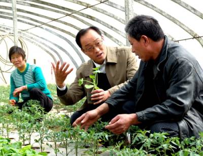 3月8日下午,郧县农信联社党委书记、理事长邱世华(左二)帯领信贷人员深入柳陂镇挖断岗村三组农民朱银方(右一)的大棚里了解蔬菜生长情况,并送去5000元春耕贷款。为认真贯彻落实”万名干部进万村入万户”活动精神,该县农信联社迅速组织86个支农服务小分队,进村入户送政策、访民情、办实事、促发展,发放小额支农贷款,扶持农民发展种养加项目,被农民誉为”挎包银行”。目前,已发放春耕生产贷款8872万元,同比多发放4658万元。本报视界网吴成林摄二0一一年三月八日
