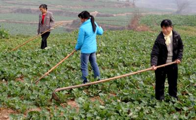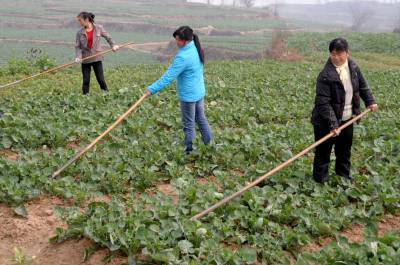 3月9日,几名留守妇女”钟点工”在鄂州市沙窝乡走马村油菜地里加强油菜管理。眼下正值春耕时节,在沙窝乡村的田间地头,随处可见到留守妇女”钟点工”忙碌的身影。今年年初,沙窝乡因大量青壮年外出务工,许多家庭和种养大户缺少耕种劳动力,以干农活为主的留守妇女”钟点工”受到当地种养大户或缺少劳力家庭的欢迎。留守妇女”钟点工”的出现,不仅就近解决了当地劳动力短缺问题,同时也增加了她们的收入。