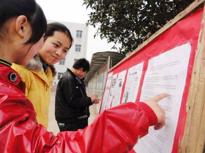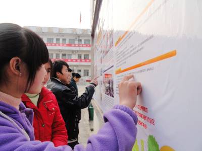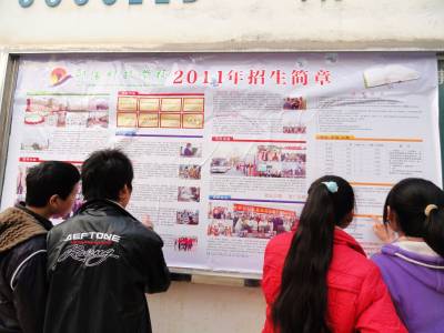 自3月初我省中职春招工作启动以来,郧县各学校积极做好中职春招的宣传动员工作,让学生和家长做到入眼、入耳、入脑、入心,努力改变他们认识上的”误区”,营造良好的舆论氛围。图为3月10日郧县刘洞镇九年一贯制学校的学生们正在看2011年我省中等职业学校春季招生的宣传展板。(郧县刘洞镇九年一贯制学校高超/摄邮编442525)