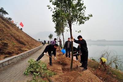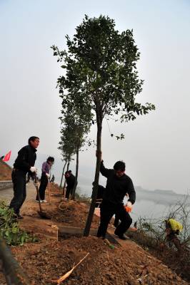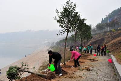 3月10日上午,毗邻三峡大坝的秭归县徐家冲港湾177米平台一片繁忙,来自该县县直各单位的机关干部、武警官兵和青年志愿者共1000多人参加义务植树活动,共同为大坝增添一抹新绿。