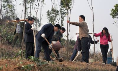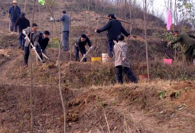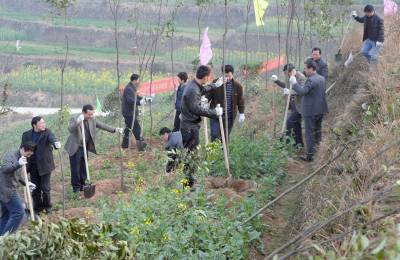 微风轻拂新栽树,绿绽枝头满眼春。3月11日,鄂州市干部群众一起1200余人到鄂城区泽林镇银山村荒山义务植树。当日,植树队伍种下了女贞、香樟、马尾松、刺槐、胡柚等近2万多株树木,为吴都大地再添一片新绿。据了解,鄂州市自1982年开展全民义务植树活动30年来,全民年均义务植树160万株,森林覆盖率从20世纪80年代初的8.1%提高到现在的16%,城市建成区的绿化覆盖率已由1981年的1.9%上升到40.43%,人均公共绿地面积从2平方米提高到10.58平方米。