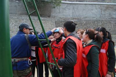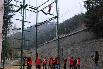国家AAA级景区----湖北黄龙滩水力发电厂拓展基地自去年投入使用以来,吸引了众多游客前来。图为3月11日,武商集团十堰人商员工在湖北黄龙滩水力发电厂进行拓展训练。
