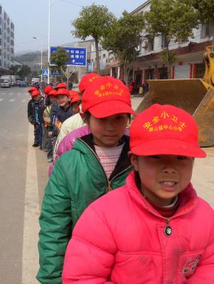 春季开学以来,郧县教育局进一步推进交通安全进学校活动,全县中小学以学校为单位向学生免费发放交通安全小红帽,开展多种形式的交通安全教育活动,提醒学生严格遵守交通规则。图为郧县谭山镇中心小学的学生在放学时戴上了醒目的小红帽,为上下学安全增添一份保障。