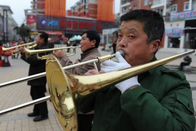 3月11日,湖北省宣恩县一社区老年管弦乐队的队员正在排练。这支管弦乐队由40多名社离退休人员组成,逢年过节,经常进军营、进社区、进农村,为当地驻军、敬老院、农民群众等进行演出,受到群众的好评。据乐队指导李青云介绍,他们其中最大的72岁,最小的也有56岁,”耍”管弦乐器不仅能陶冶性情,还能锻炼身体。