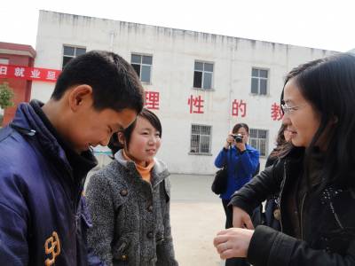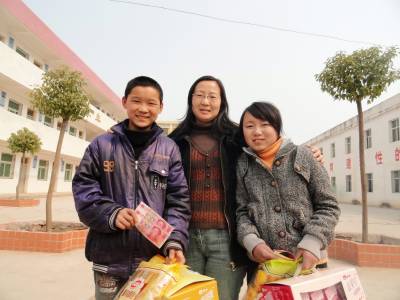 3月11日武汉长江水利委员会的工程师童梅来到郧县刘洞镇九年一贯制学校,看望,帮扶的两个贫困生学生张洋、李慧。童妈妈给孩子们带了好吃的和每人200元的新年压岁钱,把两个孩子揽在怀里千叮咛万嘱咐。自2007年始童妈妈对这两个孩子的爱心救助金已达7000多元。(郧县刘洞镇九年一贯制学校高超/摄邮编442525)