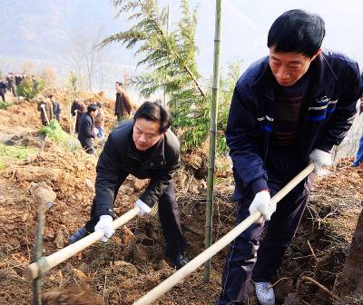 竹山县千余名干部义务植树3月12日,竹山县机关干部在植树。当日是植树节,竹山县千余名机关干部来到潘口水电站坝区,参加义务植树活动。(本报视界网章磊摄)图片:1、搬运树苗。2、栽种山竹。地址:竹山县交通局章磊电话:15972574118