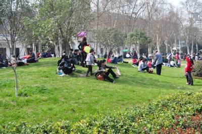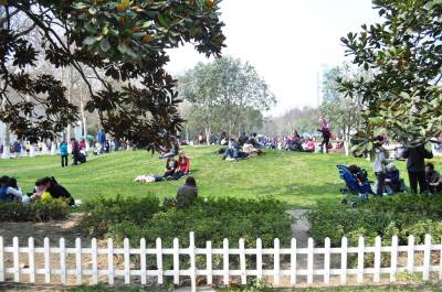 3月12日,春光明媚,随着天气转暖气温回升,温暖的阳光让人们享受到浓浓春意,连日来湖北武汉出现难得的晴好天气,周末双休日气温达到十八到二十摄氏度,许多市民纷纷走出户外踏青游玩,”炎热”的天气让人感到夏日的到来。(本报视界网周林利摄)