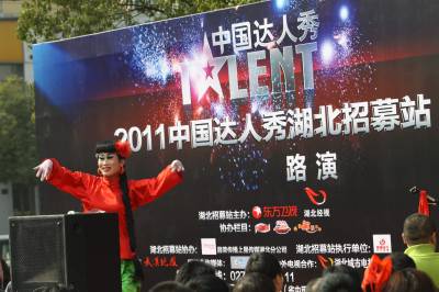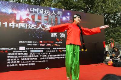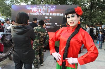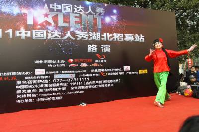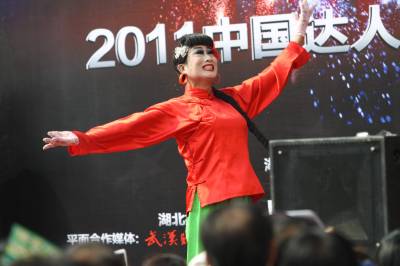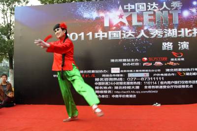 2011年3月12日湖北武汉,中国达人秀湖北站在武昌南湖社区路演。当日,反串女角的”芭蕾”大叔王吉祥备受欢迎。换上红绸衣、浅绿阔腿裤、扎着马尾长辫闪亮登场,舞台中央50岁的他变身白毛女——喜儿。随着芭蕾舞剧《白毛女》响起,”她”翩翩起舞,踮脚旋转3分钟,引来观众阵阵尖叫。据了解,武汉赛区将有近10场路演、5场初赛和2场复赛。相较于去年”达人秀”,今年更看重选手的才艺和情感,以及湖北人的创新精神。著名表演艺术家尹北琛将担任本届”达人秀”评审主席。