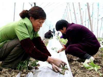 本报视界网签约摄影师颜义众:3月13日,湖北竹溪县城关镇水寨子村留守妇女在该村蔬菜基地干活。据悉,这些留守妇女工资每天40元,她们忙完家务活后,到便到蔬菜基地打工挣钱。竹溪近年走农业产业化之路,现建成以茶叶、魔芋、药材、蔬菜、烤烟、贡米等为主的农特板块基地达62万亩,这些基地为留守妇女提供”上班”岗位,让她们在家门口挣钱。