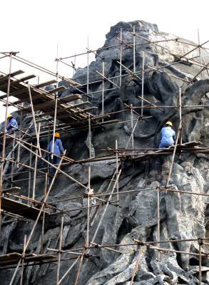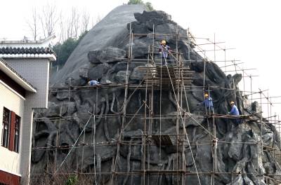 3月13日,三峡库区最大地面文物建筑群秭归县屈原祠景区,工人正在精心打造仿生态”树”景。据悉,为美化屈原祠外围护坡,该县移民、文化旅游部门邀请武汉大学工程学院专家设计出独具三峡库区文化特色的”树”景,工程自今年1月动工,可望在端午节前对游客开放。本报视界网王爱平摄作者单位:中共秭归县委宣传部联系电话:13487250823邮政编码:4436000电子邮箱:wangaiping19731127@163.comQQ号码:248545598