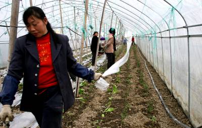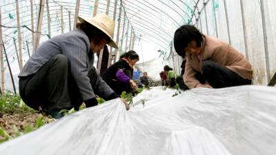 本报视界网签约摄影师颜义众:3月13日,湖北竹溪县城关镇蔬菜基地内,工人正在对新栽的大棚蔬菜覆盖地膜,这样可有效减少水分蒸发,达到保墒目的。由于近段时间,竹溪遭遇到持续干旱,该县在春播中,注重对农作物进行地膜覆盖,达到节水保墒目的。