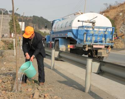 湖北省竹溪县公路局加强公路绿化,在保证植树数量的前提下,提高了树木的成活率,创建出一条条生态之路,效果显著。图为3月12日植树节当天,305省道同庆沟管理站工人在给新种植的香樟树浇水的镜头。地址:湖北省竹溪县公路局周元龙周泉顺摄邮编:442300电话:13886836068