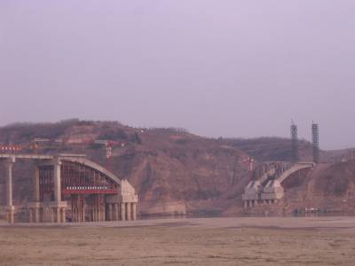 郧县即将对接的汉江公路二桥。为了国家南水北调中线工程顺利推进,为了拓展县城发展空间,为了将郧县融入十堰市半小时经济圈,实现与十堰无缝对接,真正成为十堰北部组团,为了促进郧县经济的腾飞。近年来,郧县县委、县政府抢抓机遇,历尽千辛万苦,最终于2008年9月26日上午,湖北省郧县汉江公路二桥在郧县汉江河畔的茶店长岭正式开工,预计将于2012年3月建成通车。图为即将对接的郧县汉江公路二桥。