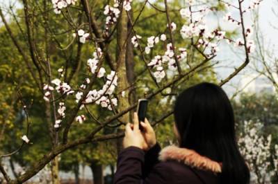 2011年3月14日,湖北省宜昌市夷陵区滨河公园和河心公园内的玉兰花、樱桃花、桃花等陆续开放,市民们走出家门,感受春天的气息,掏出相机、手机拍照留恋。