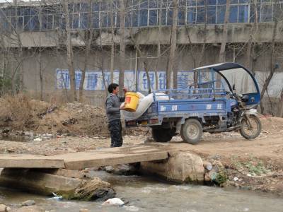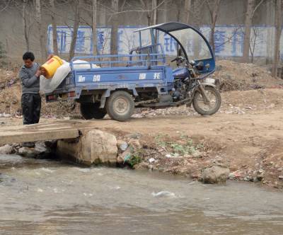 14日,郧县刘洞镇李家村村民在往家里拉水供牲畜饮用。受将雨偏少影响,十堰地区旱情持续,部分山区农户水窖已存水不多。
