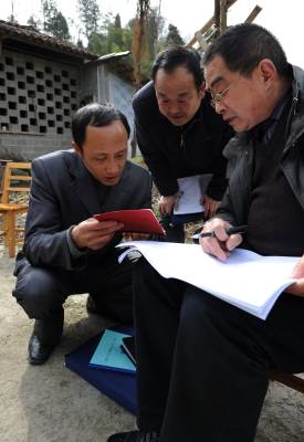 3月15日,宣恩县经济与信息化局驻村工作组在万寨乡板场村5组养殖大户张清国家里走访,了解惠农补贴到位情况,并认真填写《干部进村入户活动调查表》。”万名干部进万家”活动组织开展以来,为真实了解群众心声,该县给每一位干部统一制发了《干部进村入户活动调查表》,调查内容包括农户基本情况、2010年生产发展情况和各项惠农政策落实情况、收入水平、生活环境、农村负担情况和迫切需要解决的问题等。目前,该县近千名党员干部成立了279个驻村工作组,手捧《干部进村入户活动调查表》、《民情日记》,已陆续进村入户走访。