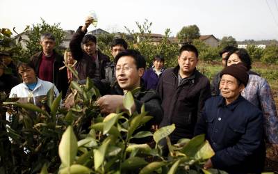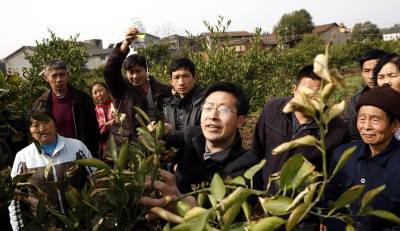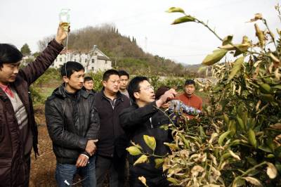 挂着吊水学技术2011年3月15日,农艺师在田间传授柑橘春培技术。当天,湖北省宜昌市点军区桥边镇石堰村,农业技术进村入户培训班在这里举行,青年农民陈勇刚认为,一年之际在一春,过了这村就没有这个店,于是请人举着液体也赶来听这一课。文振效