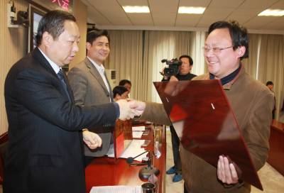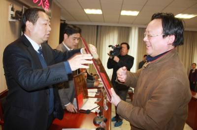 3月16日下午,孝昌烟草在该县政府五楼会议室召开《卷烟打假市场整顿总结表彰大会》,对2010年度卷烟打假工作中涌现出的一大批先进集体、先进个人进行表彰。图为该县县长刘建军等领导为先进集体颁发奖牌。签约摄影师宋俊初摄