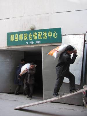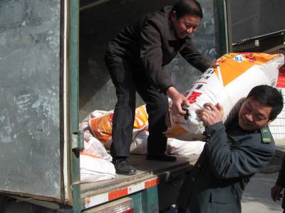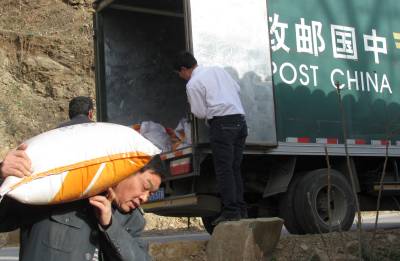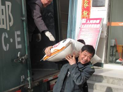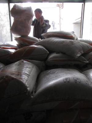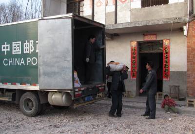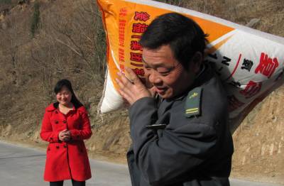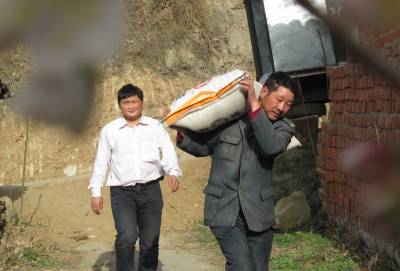 3月16日,郧县邮政局工作人员正为该县茶店镇王家湾村送化肥。目前正值春播时节,为解决山区农民购买农资难问题,郧县邮政局加大农资配送力度,入春以来,出动农资配送车辆100余次,行程达3000余公里,配送农资500余吨。农资配送专用车已跑遍该县20个乡镇,343个行政村,1746个村民小组,惠及125100余户。